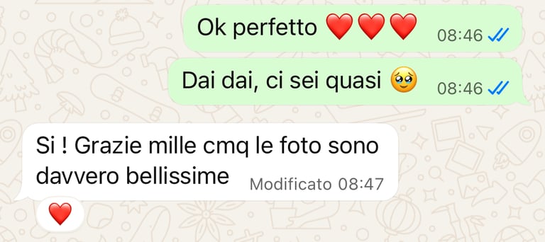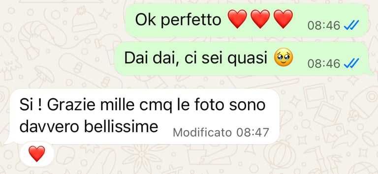 Il mio motto è semplice: divertiti e sii te stesso! Ogni sessione è pensata per essere un momento autentico e piacevole, in cui il cliente possa vivere un’esperienza unica e spontanea.